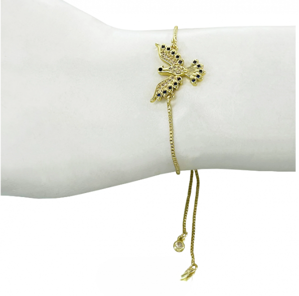 Let your style take flight with this stunning gold-plated bracelet featuring a beautifully detailed bird charm. The delicate design, accented with sparkling stones, adds a graceful touch to any outfit. It's adjustable fit ensures comfort, making it perfect for everyday wear or special occasions. Whether for yourself or as a thoughtful gift, this bracelet brings a touch of elegance and charm to any jewelry collection.