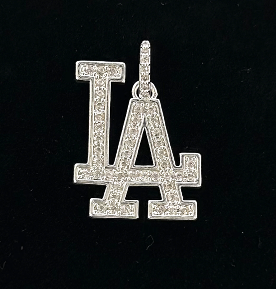 Make a bold statement with this dazzling LA Pendant, crafted for true fans of style and city pride. This silver plated pendant features the iconic LA logo encrusted with shimmering stones, delivering serious shine with every look. A must-have in your fashion jewelry collection, it pairs perfectly with any outfit—casual or glam. Whether you're repping the West Coast or just love sleek fashion jewelry, this pendant turns heads. Buy now to add that signature sparkle to your collection!