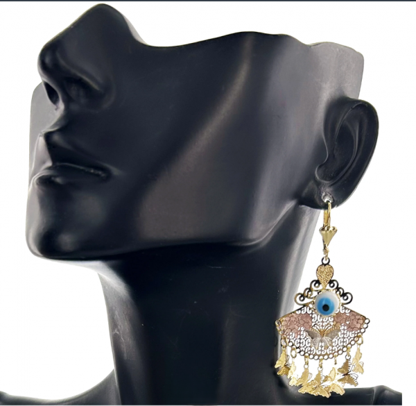 Bring charm to your look with these stunning Filigree Earrings, designed with delicate patterns and graceful details. The intricate cutwork pairs beautifully with the gold-toned finish, while the dangling leaf accents create gentle movement that catches the eye. A striking blue centerpiece adds a touch of vibrancy, making these earrings perfect for festive occasions or chic everyday styling. Lightweight yet bold, they’re designed to turn heads and complement your outfit effortlessly. Buy this fashion jewelry from Kaash Jewelry!