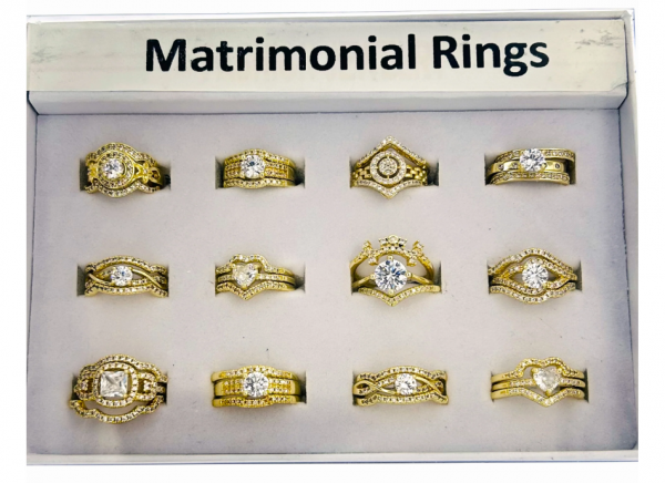 Celebrate everlasting love with our Triple Matrimonial CZ Stones Ring, a stunning addition to your gold-plated rings collection. Designed with three dazzling cubic zirconia stones set in radiant gold plating, this piece captures the essence of commitment and style. The intricate detailing and lustrous finish make it an ideal choice for engagements, weddings, or special occasions. Perfect for couples who adore fashion jewelry that sparkles with charm and beauty, this ring offers an elegant symbol of unity and devotion that shines with every glance. Buy this stunning piece and let your love story shine bright.