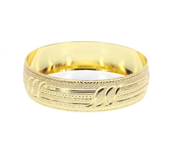 This 20 MM diamond cut bangle features sharp detailing that gives a bright, eye-catching shine. Its solid width and clean finish make it a great pick for daily wear or pairing with other bangles for a bold look.\