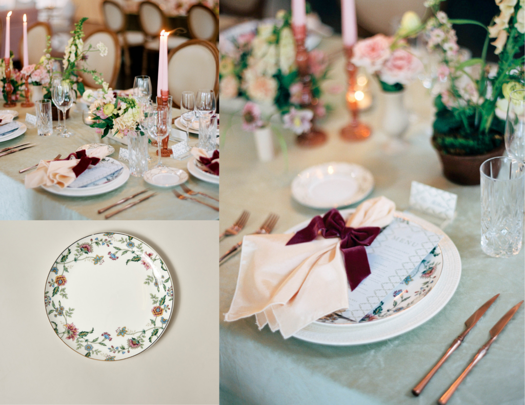 The cool thing about renting wedding China is all the options. Every wedding is different, so your tableware should match your style. Rental companies have lots of great patterns that can bring a special look to your tables.